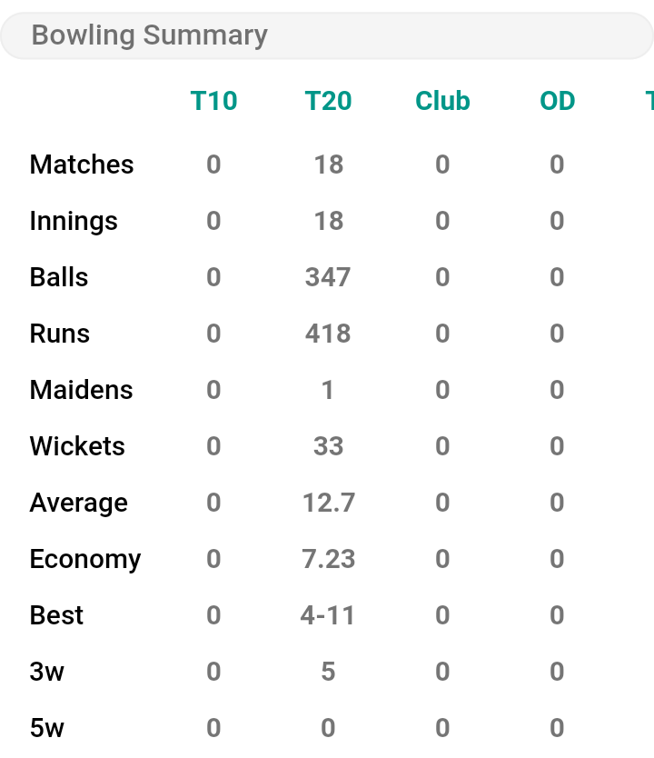 Highest Bowling Speed 127 Km/h 78.9 Mph