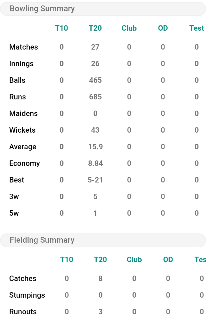 He Played 27 Match with team and scored 1064 Run with 43 wickets. He maintained 1 Number Ranking in most runs parameters and 2 number Ranking in Most wickets taker parameters.